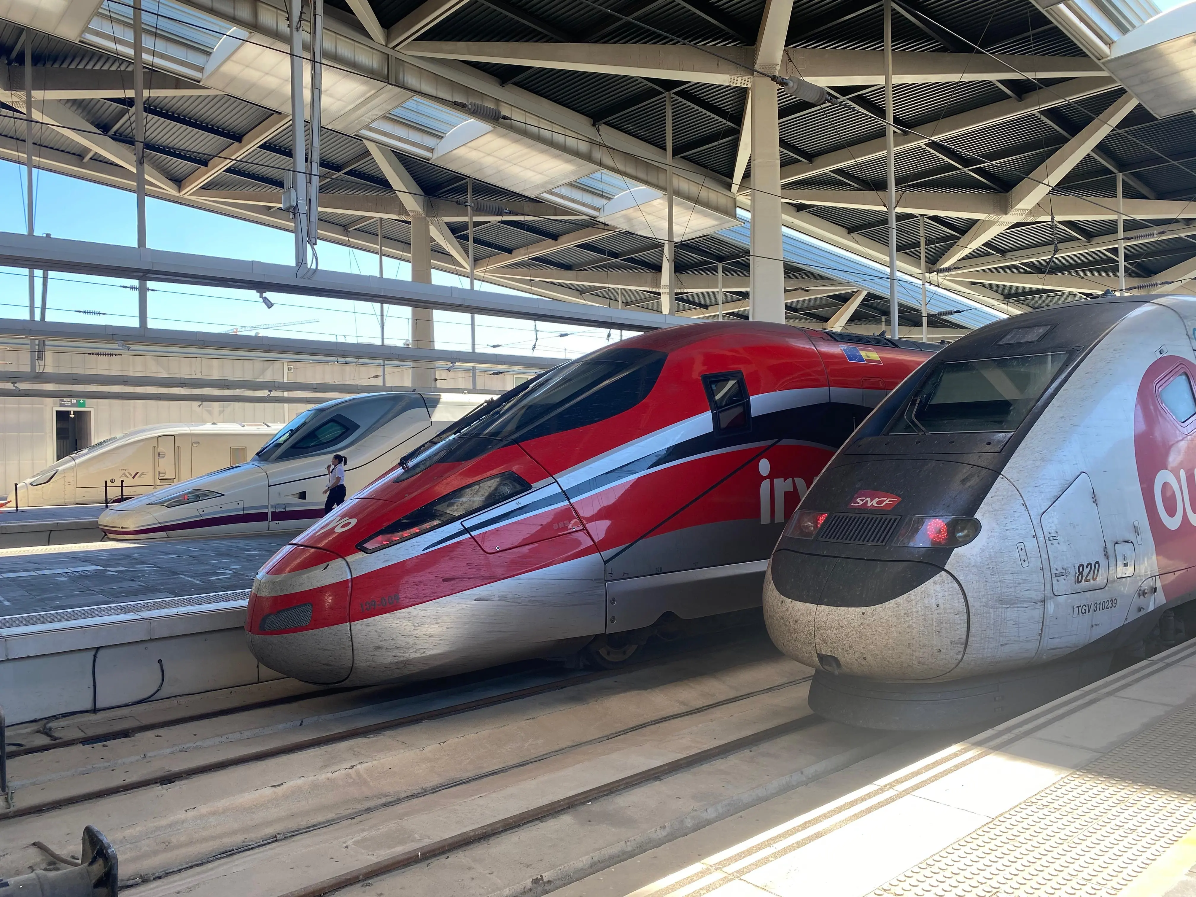 FIP Global Fares are available with both operators, but with SNCF they can be very expensive (see Cross-border TGV inOui / ICE trains). For Renfe-operated AVE trains, FIP Global Fare tickets are available from €15 (as of October 2025). These tickets can be purchased at Renfe Ticket Offices in Spain. When arriving from France, these tickets can also be bought on board — approach the train staff, who can accept card payment. 1